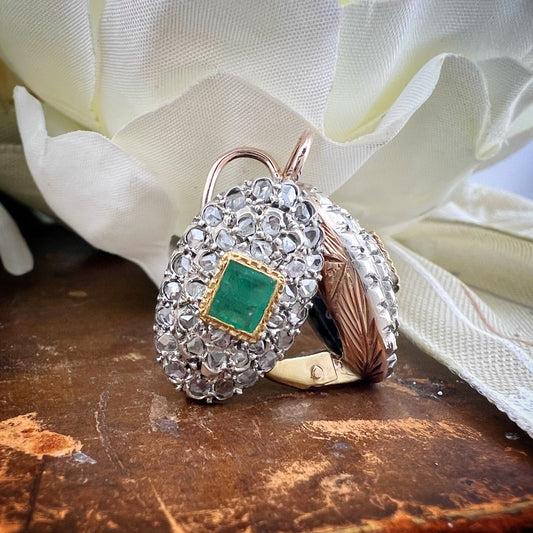 Coppia di Orecchini in Oro, Argento, Diamanti a Rosetta e Smeraldi – Modello Monachella