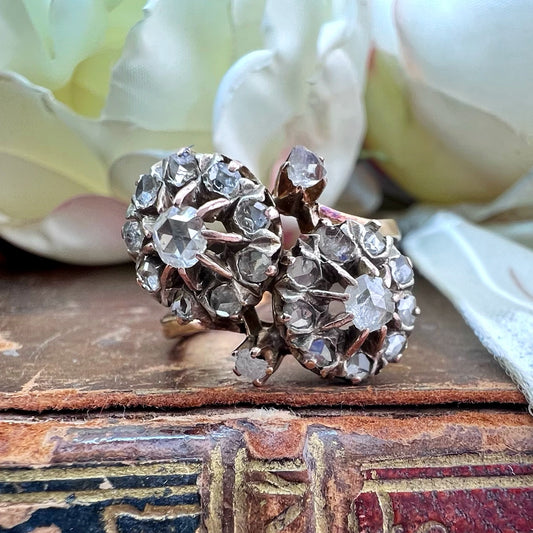 Anello contrarié Art Nouveau / primi ’900 in oro 18k con diamanti a taglio rosa coroné