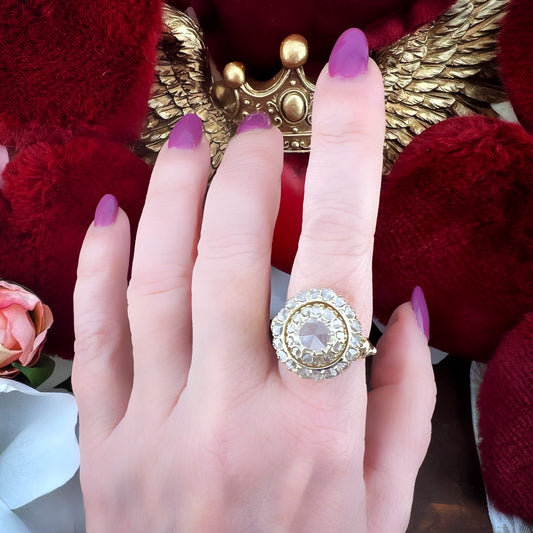 Grande anello Margherita in oro giallo 18 kt con diamanti antichi – Primi ’900