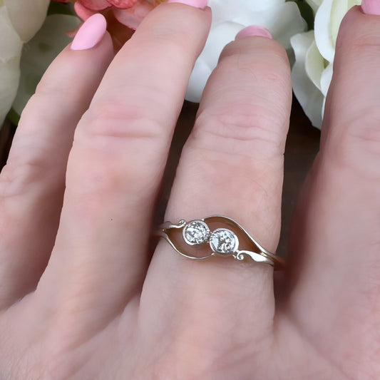 Anello antico in oro 18 e due diamanti – italia primi anni del Novecento