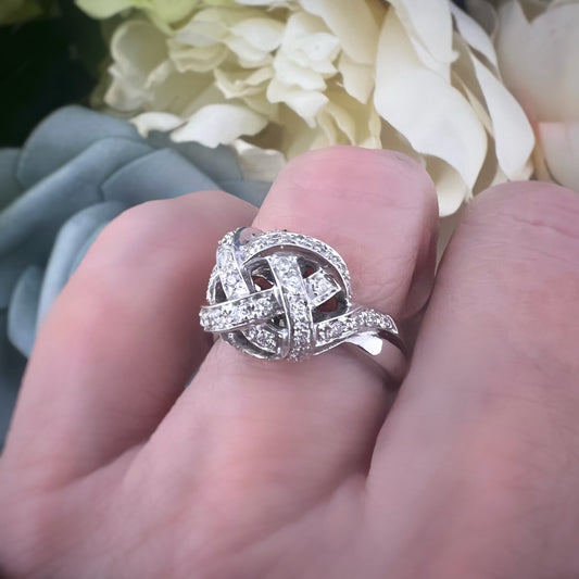 Anello Vintage Italiano “Nodo d’Amore” in Oro Bianco 18K con Diamanti