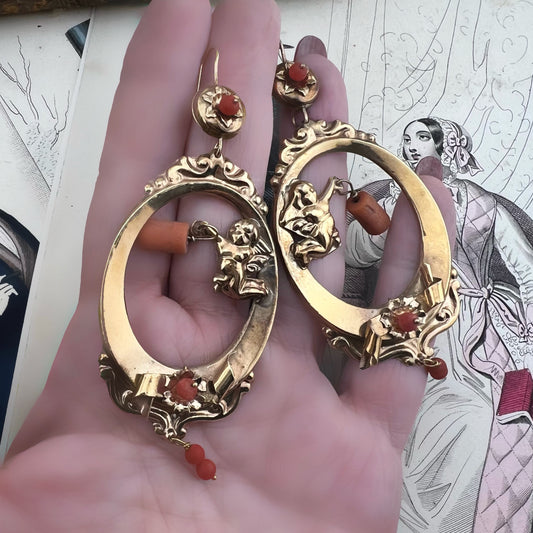 Orecchini Borbonici con Putto e Coralli — Modello Rarissimo, Regno delle Due Sicilie, metà ‘800