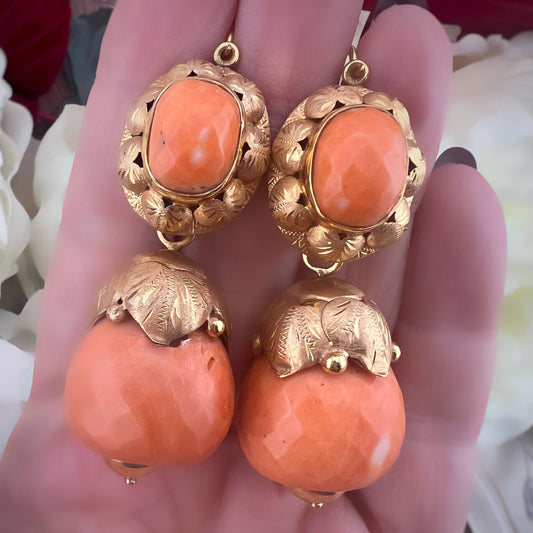 Orecchini in oro e corallo, giorno e notte