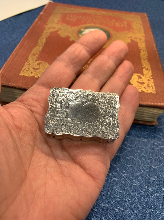 Antica piccola tabaccheria da tabacco da fiuto realizzata in argento a Birmingham nel 1897 da Cornelius Desormeaux Saunders & James Francis Hollings (Frank) Shepherd