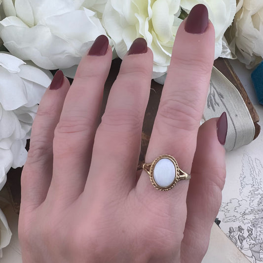 Anello vintage con grande opale cabochon e cordoncino in oro – Londra 1987