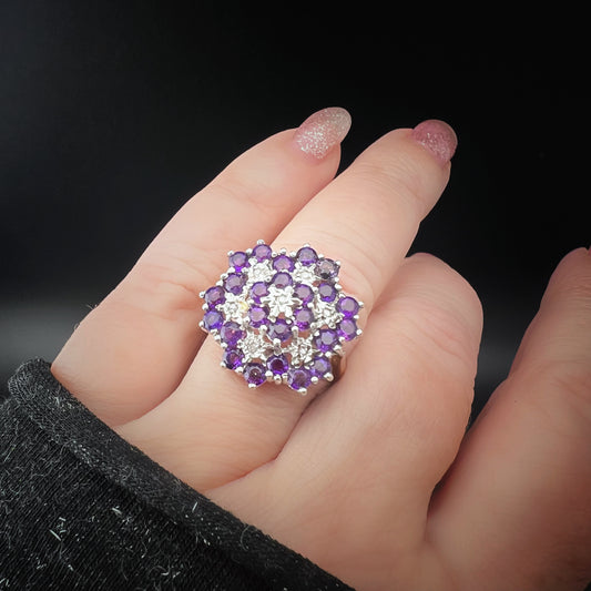 Anello a grande fiore in oro, ametiste e diamanti - Birmingham 1954