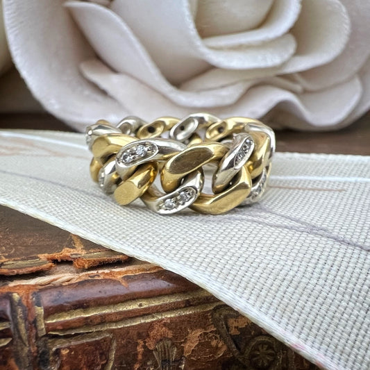 Anello a Maglie con Diamanti – Oro Giallo 18 ct, Italia, Anni ’70-’80