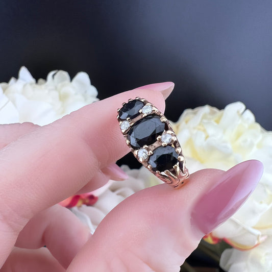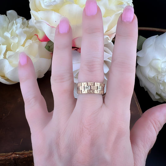 Anello a Contrarie con Margherite e Diamanti in Oro Rosa 9 ct – Vintage da Birmingham