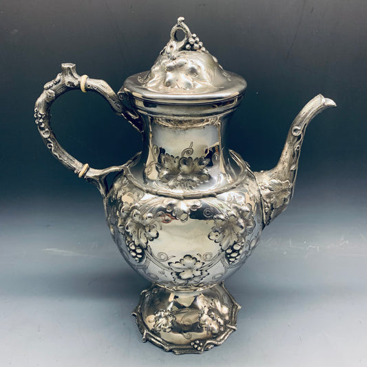 Rara caffettiera di Charters, Cann & Dunn, New York 1850 in argento di titolo COIN