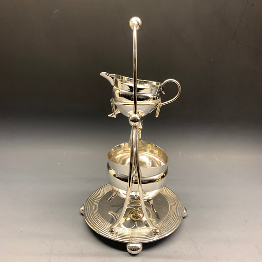 Zuccheriera e lattiera con stand. Sheffield plate, George Bowen & Sons c. 1890