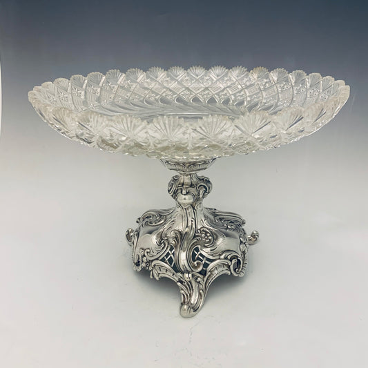Antica alzata centrotavola in argento e cristallo molato, realizzata in Russia di fine ‘800