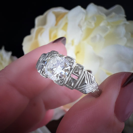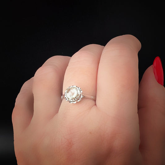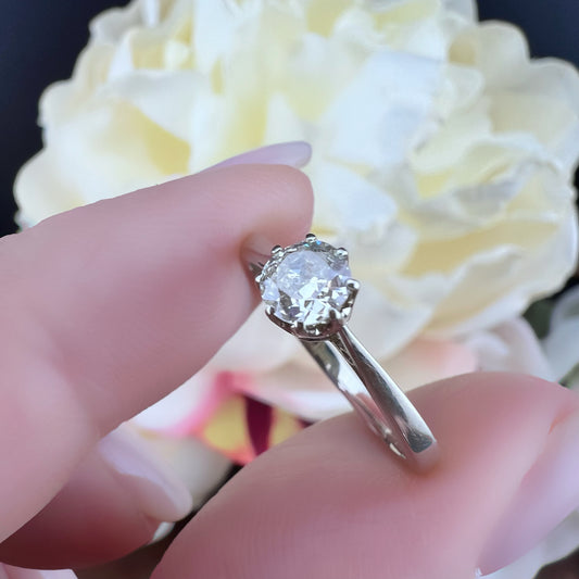 Anello solitario Art Déco in oro bianco 18 ct con diamante old mine cut