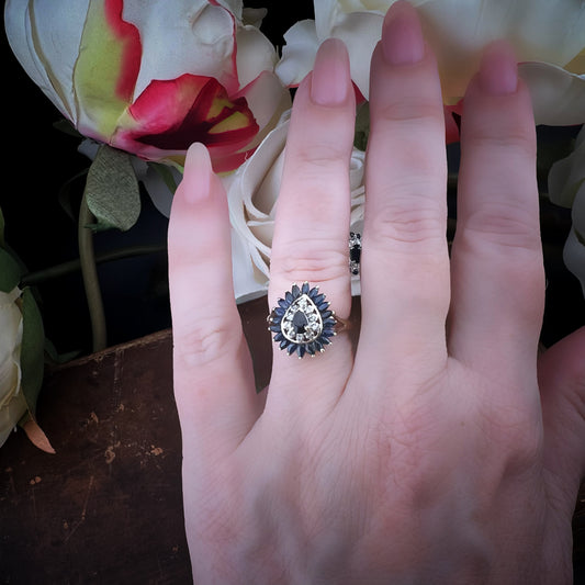 Anello vintage a goccia con zaffiri e diamanti – Londra 1989