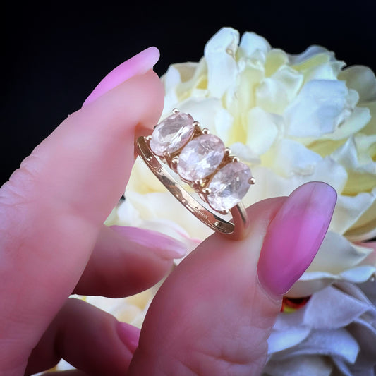 Anello Trilogy in Oro Giallo con Quarzi Rosa – Vintage Anni ’90