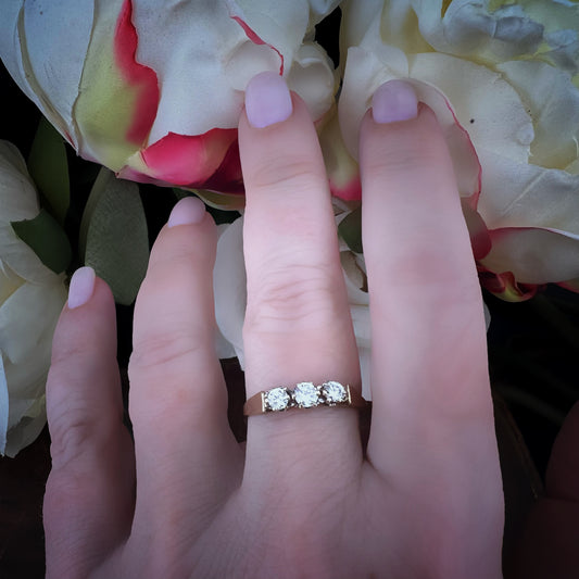 Anello trilogy vintage in oro e cubic zirconia – Birmingham 1981