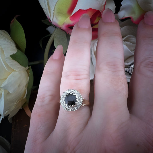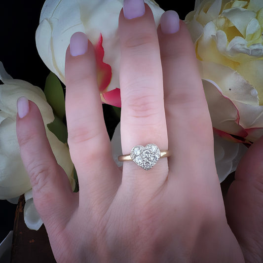 Anello vintage a cuore in oro 9 ct e diamanti