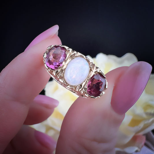 Anello vintage in oro con petalite taglio trilliant e diamanti