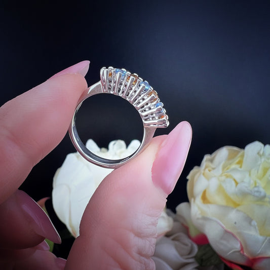Anello vintage in oro bianco 18 ct con topazi azzurri e quarzi citrini Madera Vintage 18K White Gold Ring with Blue Topaz and Madeira Citrine Quartz