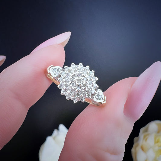 Anello vintage in oro a cupola di diamanti con dettagli a cuore