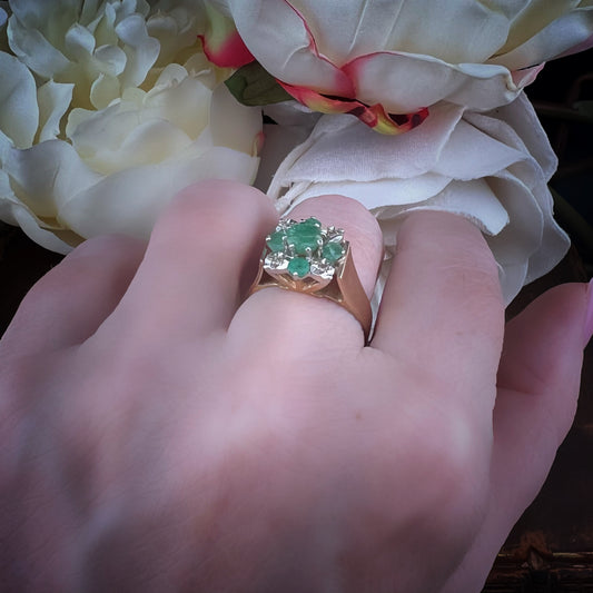 Anello vintage in oro con smeraldi e diamanti – Sheffield, 1980