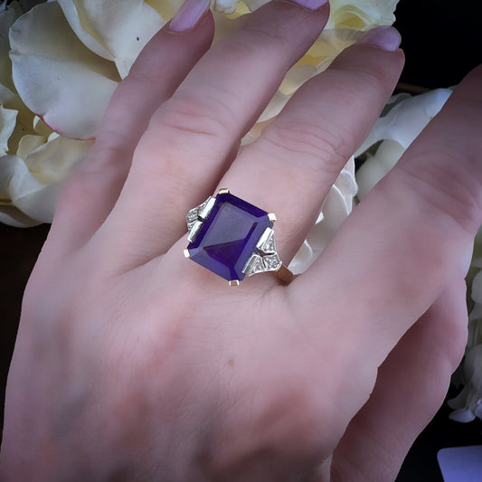 Anello Vintage in Oro Giallo e Bianco con Ametista e Diamanti – Londra, Inghilterra