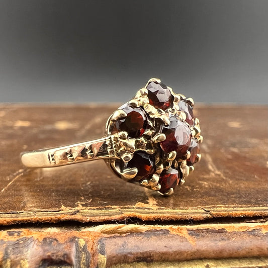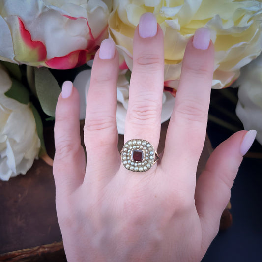 Anello antico con granato e perle – Epoca Georgiana (ca. 1830-1840)
