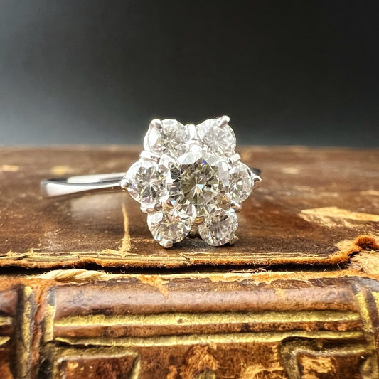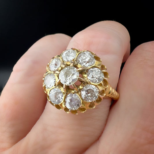 Anello Antico a grande margherita in oro 18 ct con diamanti Old Mine Cut
