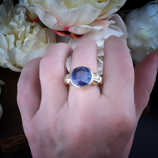 Anello antico con Zaffiro Ceylon 7.50 ct e Diamanti Old Mine – Italia, Anni ’50