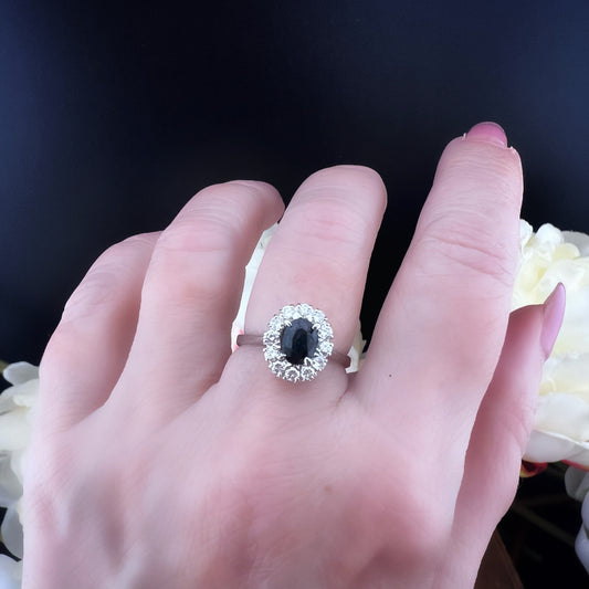 Anello a margherita in oro 18 ct con diamanti e zaffiro