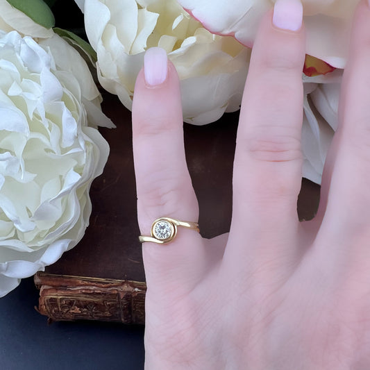 Elegante anello solitario vintage realizzato a Birmingham nel 1985, in oro giallo 9 carati