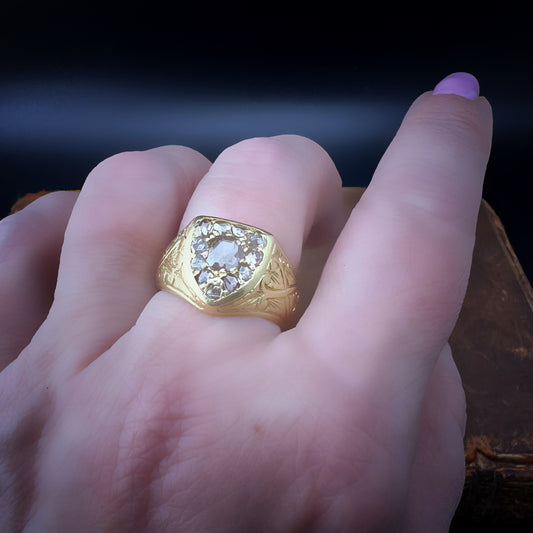 Grande anello primi ‘800 oro 18 ct e diamanti taglio rosa per circa 2 ct