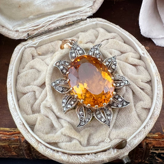 Grande Pendente Girasole Vintage in Oro, Argento con Citrino Madeira e diamanti