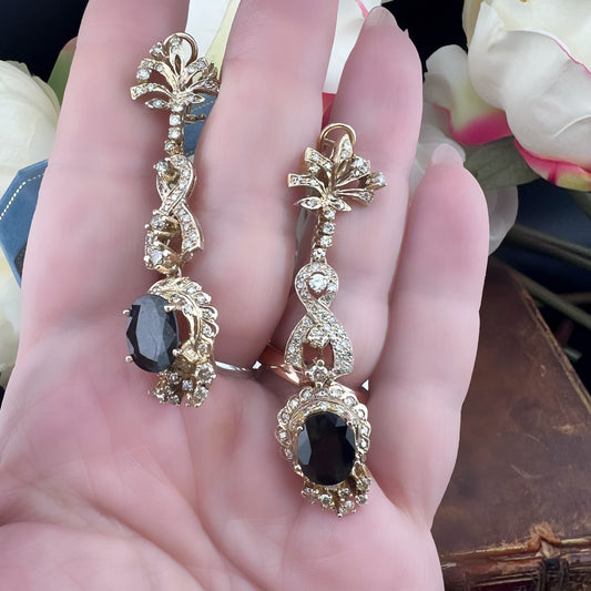 Grandi Orecchini Pendenti Vintage con Zaffiri Naturali e Diamanti – Oro Giallo 14kt