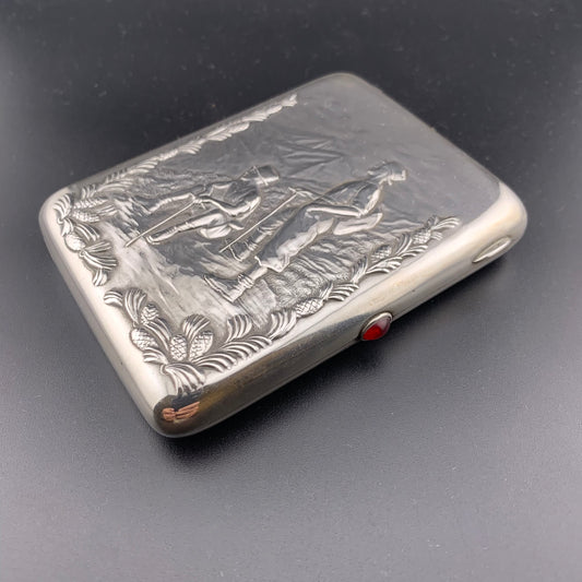 Porta sigarette in argento e smalti neri Impero Austroungarico