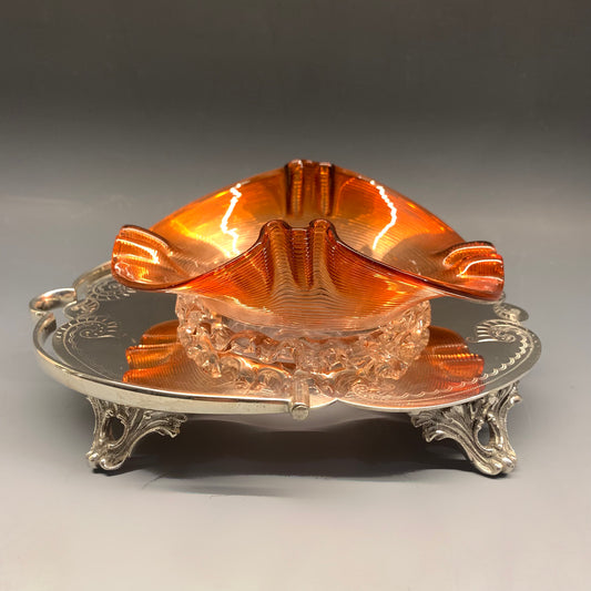 Piccolo vassoio inglese da due tazze realizzato in sheffield plate nel 1902 come da dedica