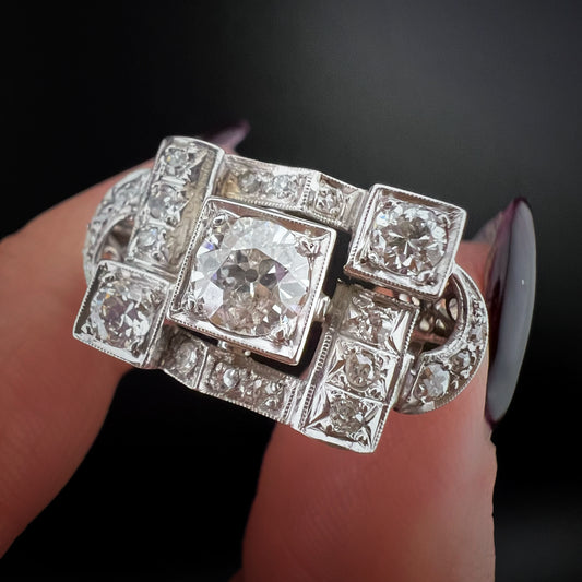 Anello Art Déco in Platino con Diamanti Naturali