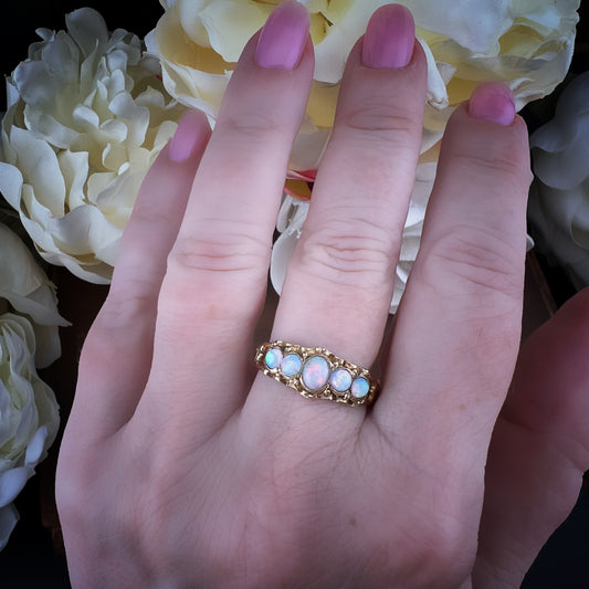 Anello Antico in Oro con Cinque Opali – Un Sogno Vittoriano