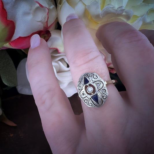 Anello Antico in Oro e Platino con Zaffiri e Diamanti – Periodo Decò (-1930)