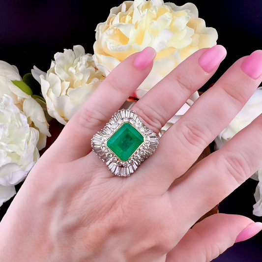 Anello Ballerina con Smeraldo Colombiano e Diamanti – Anni ’50-’60