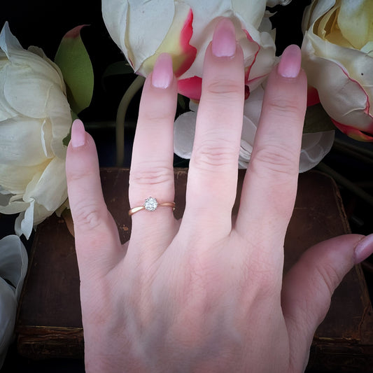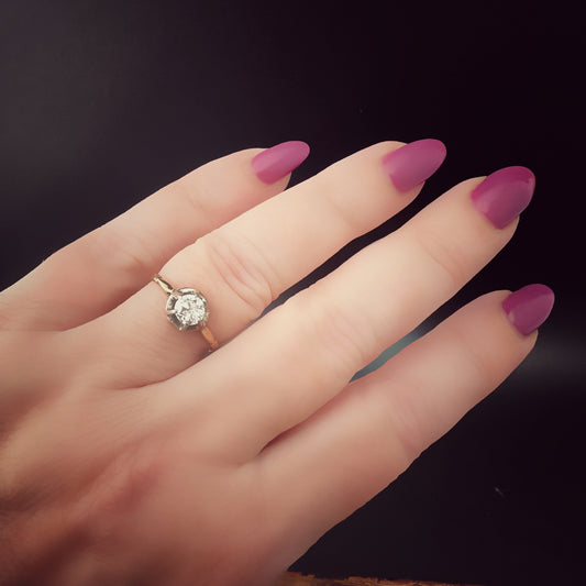 Solitario anni ‘20 oro 18 ct diamante vecchia Europa 0.45