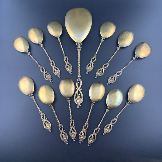 Set di palette da gelato con cucchiaio da servizio in argento dorato. Germania primi del 900