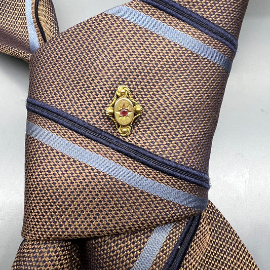 Spillone inglese tipo regimental in oro 9 ct. con rubino