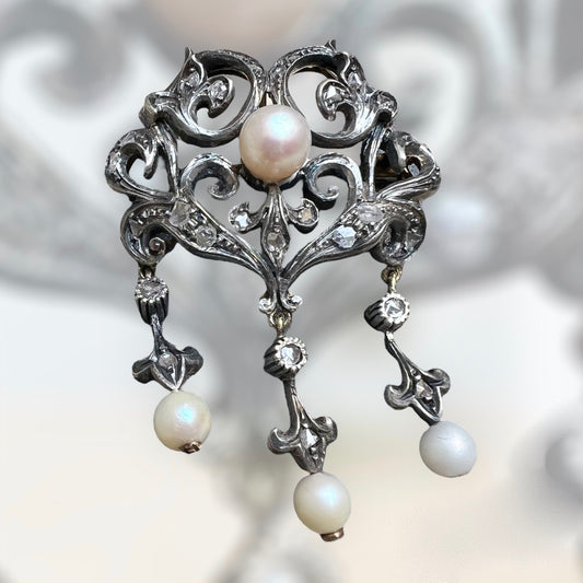 Spilla/pendente vittoriana in oro, diamanti e smalti