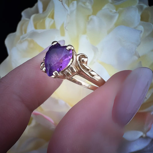 💜Anello vintage in oro giallo 9 ct con ametista a cuore