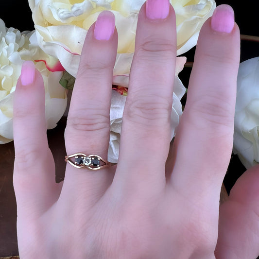 💍 Anello Trilogy Vintage con Zaffiri e Diamante (Londra, 1981)