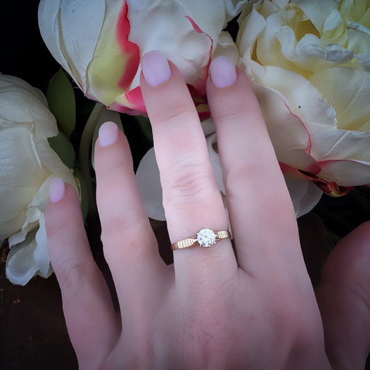 💍 Anello solitario vintage in oro giallo con cubic zirconia – montatura a corona