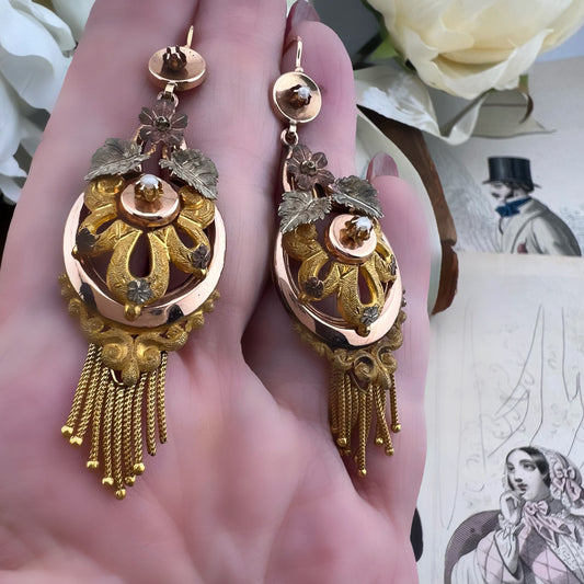 Orecchini Borbonici in Oro Rosa e Giallo — Regno delle Due Sicilie, metà ‘800