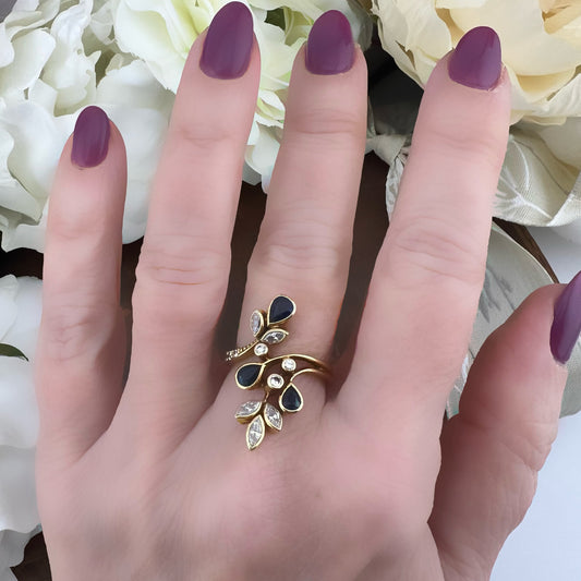 Anello a ramage verticale in oro 18 ct zaffiri e diamanti