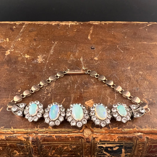 Armband aus 9 Karat Gold und Silber mit Opalen und weißen Saphiren. England, 1960er Jahre.