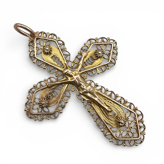 Croce Pendente in Oro e Argento con Topazi e Citrino